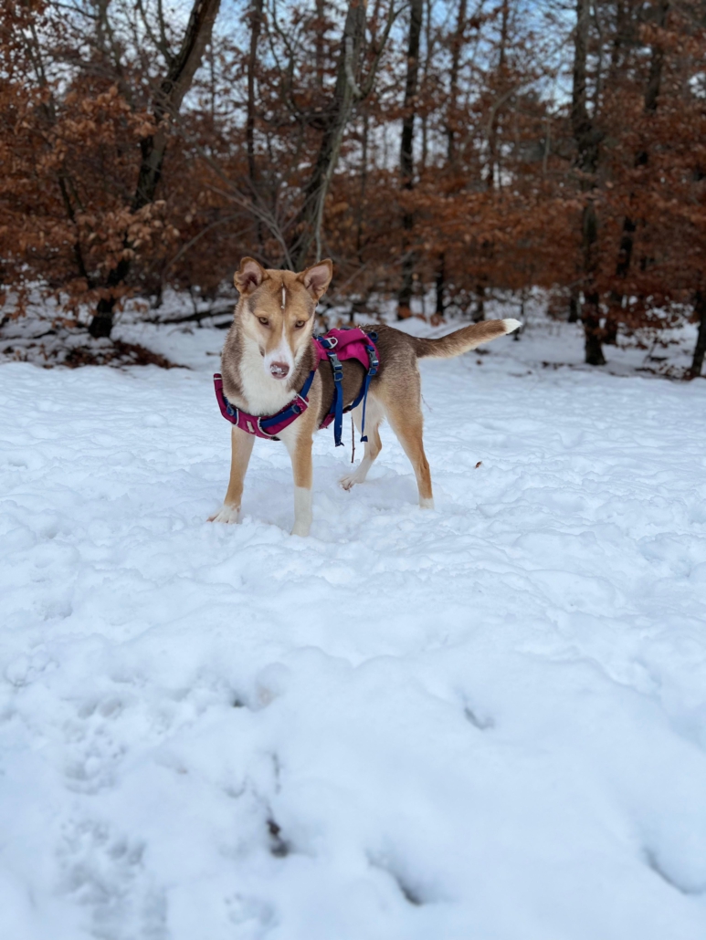 Das Laufen an der Leine wird bereits fleißig geübt und klappt bereits richtig gut – gemeinsame Spaziergänge werden mit ihr immer entspannter.