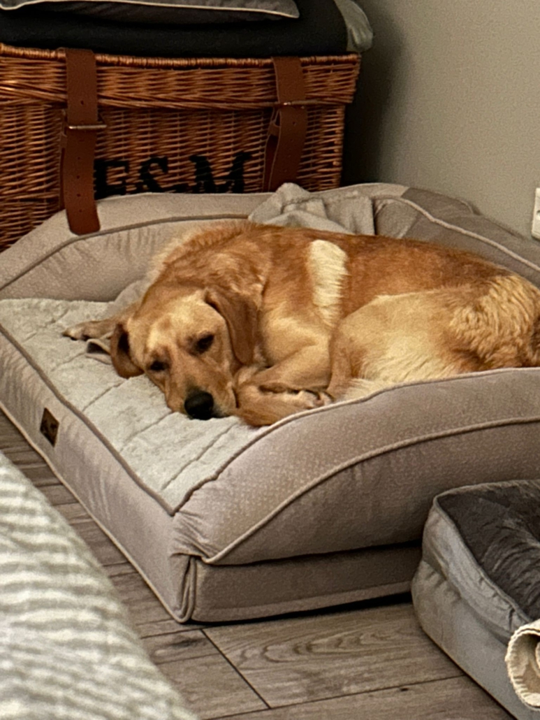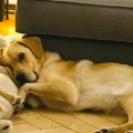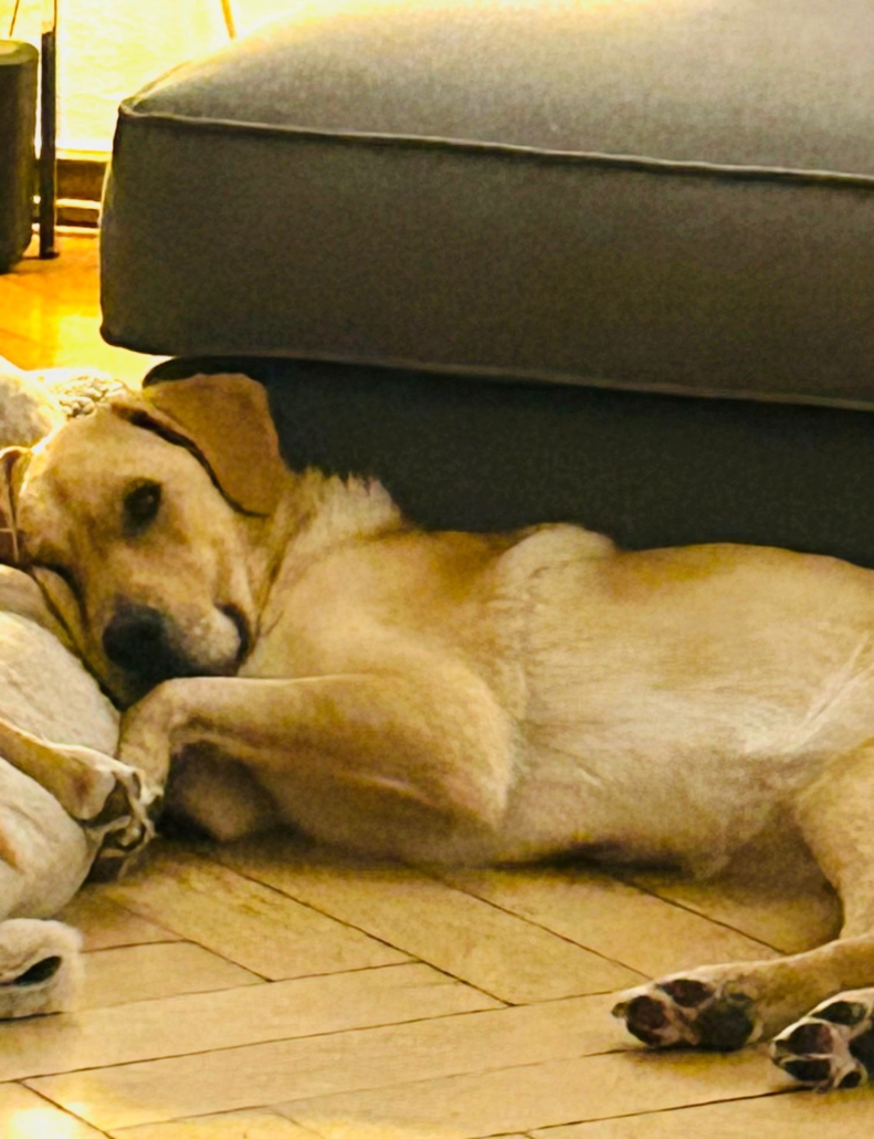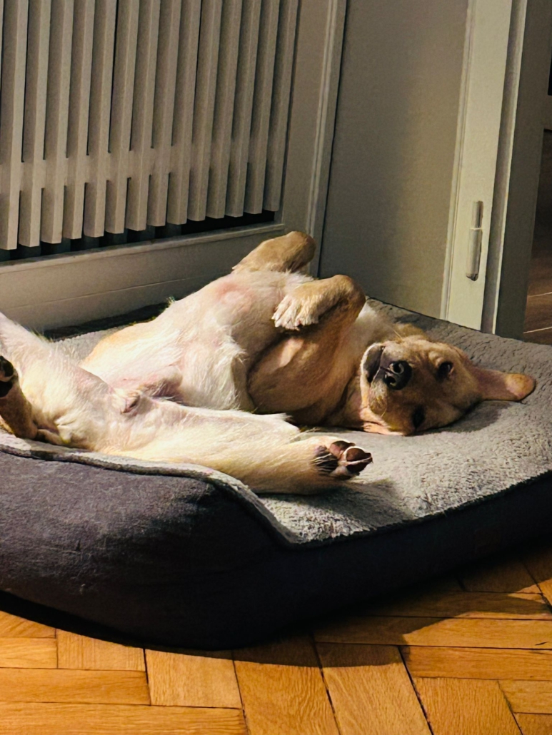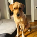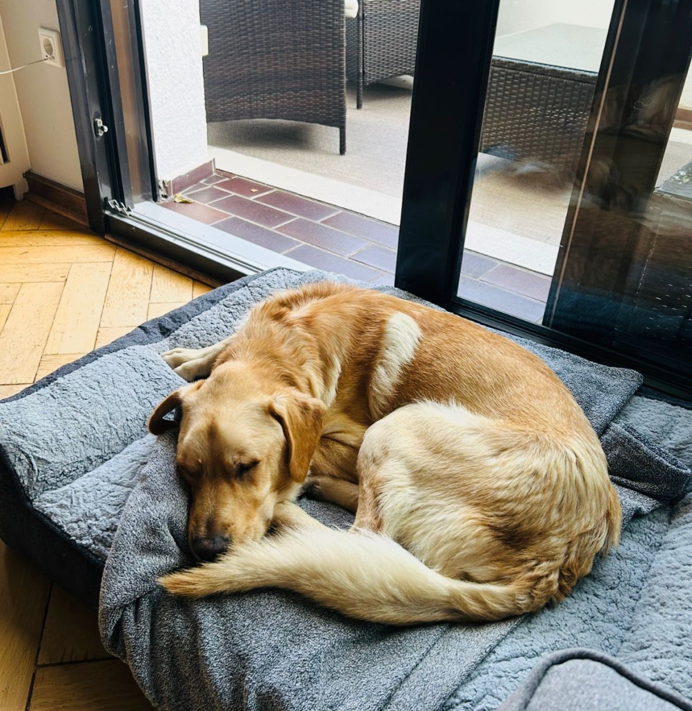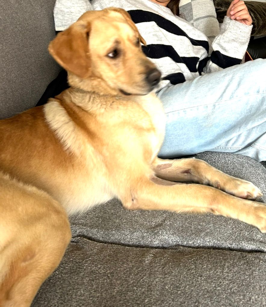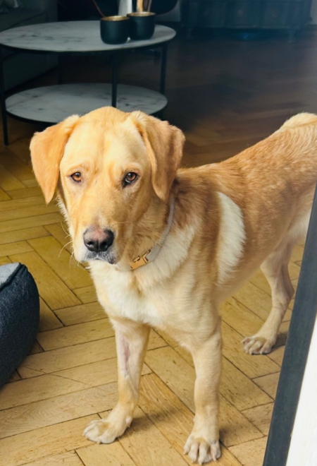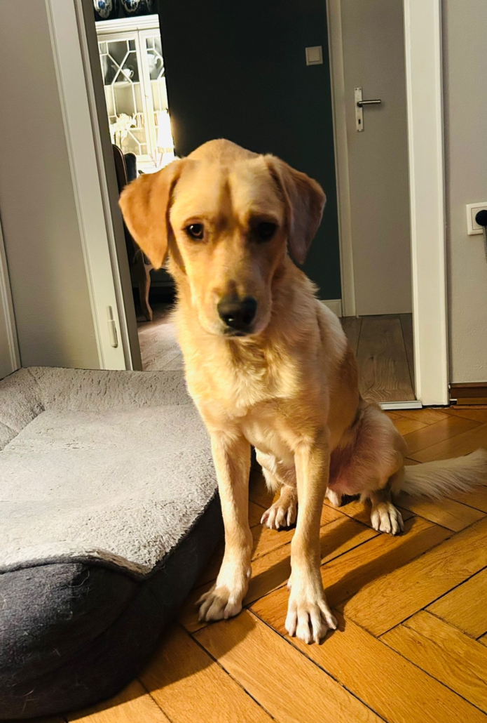 Da es sich um einen Fundhund handelt, kennen wir die Elterntiere nicht. Optisch erinnert Anton an einen Labbie-Mix.