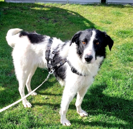 Der ca. 52 cm große verschmuste Rüde ist kastriert und erinnert optisch an einen Border-Collie-Mix.