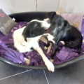 Balto lebt auf der Pflegestelle mit mehreren Hündinnen zusammen, zeigt sich sehr verträglich und fühlt sich als Hahn im Korb pudelwohl.