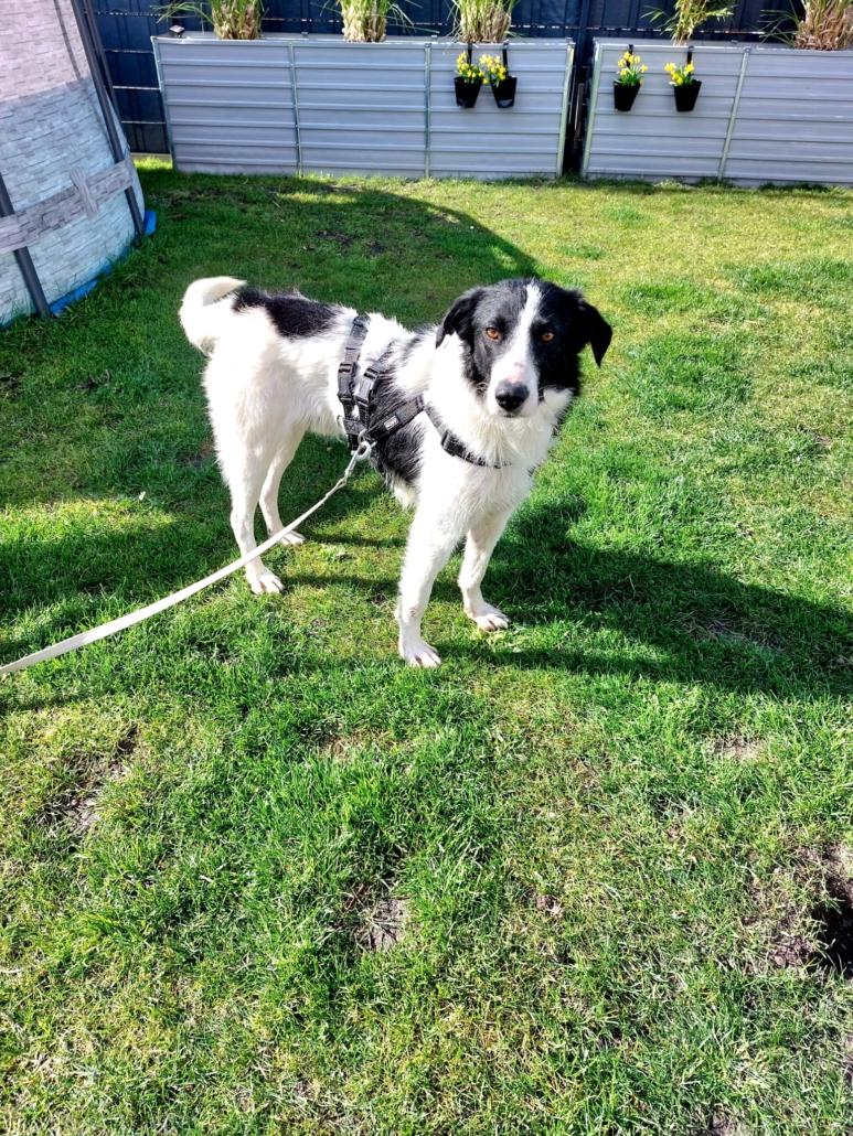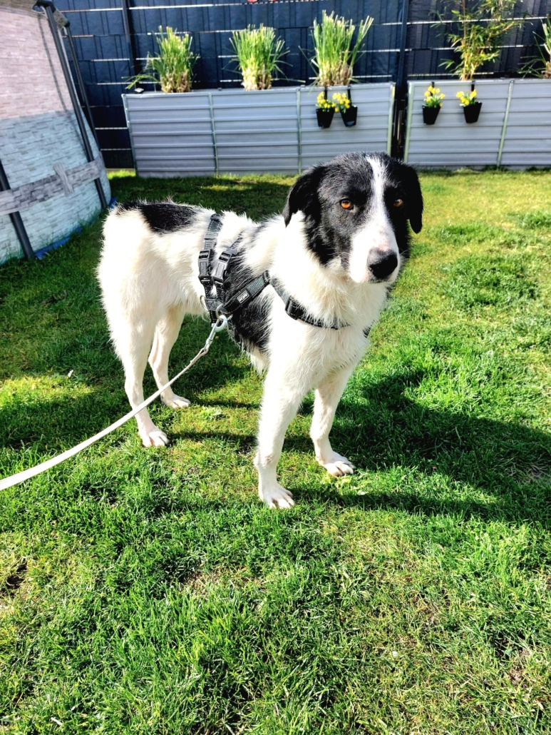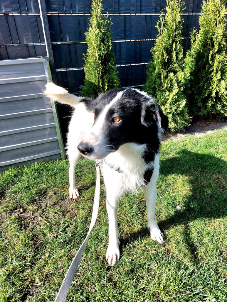 Der ca. 52 cm große verschmuste Rüde ist kastriert und erinnert optisch an einen Border-Collie-Mix.