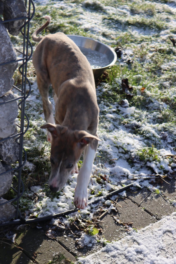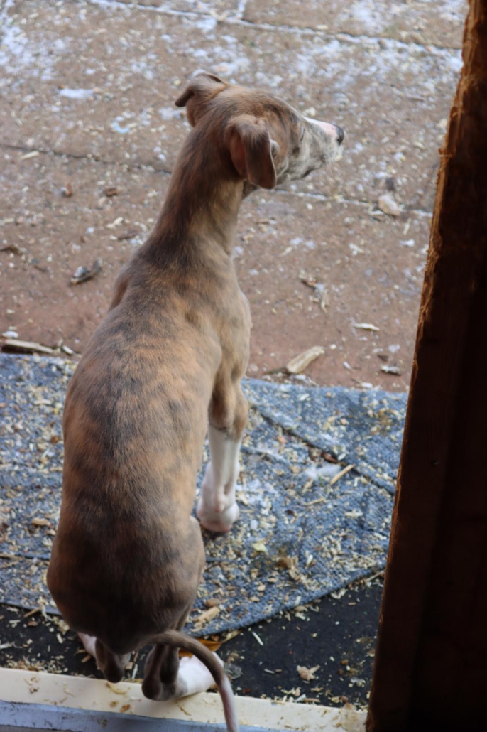 Geboren am 10.10.2025 (durch einen Tierarzt geschätzt) hat sie zur Zeit eine Schulterhöhe von 40 cm und wiegt momentan 6,5 kg.