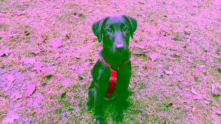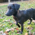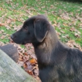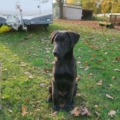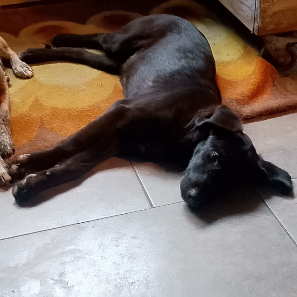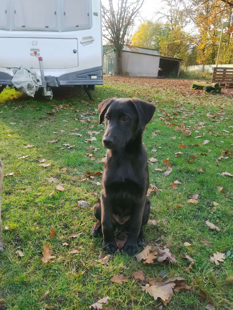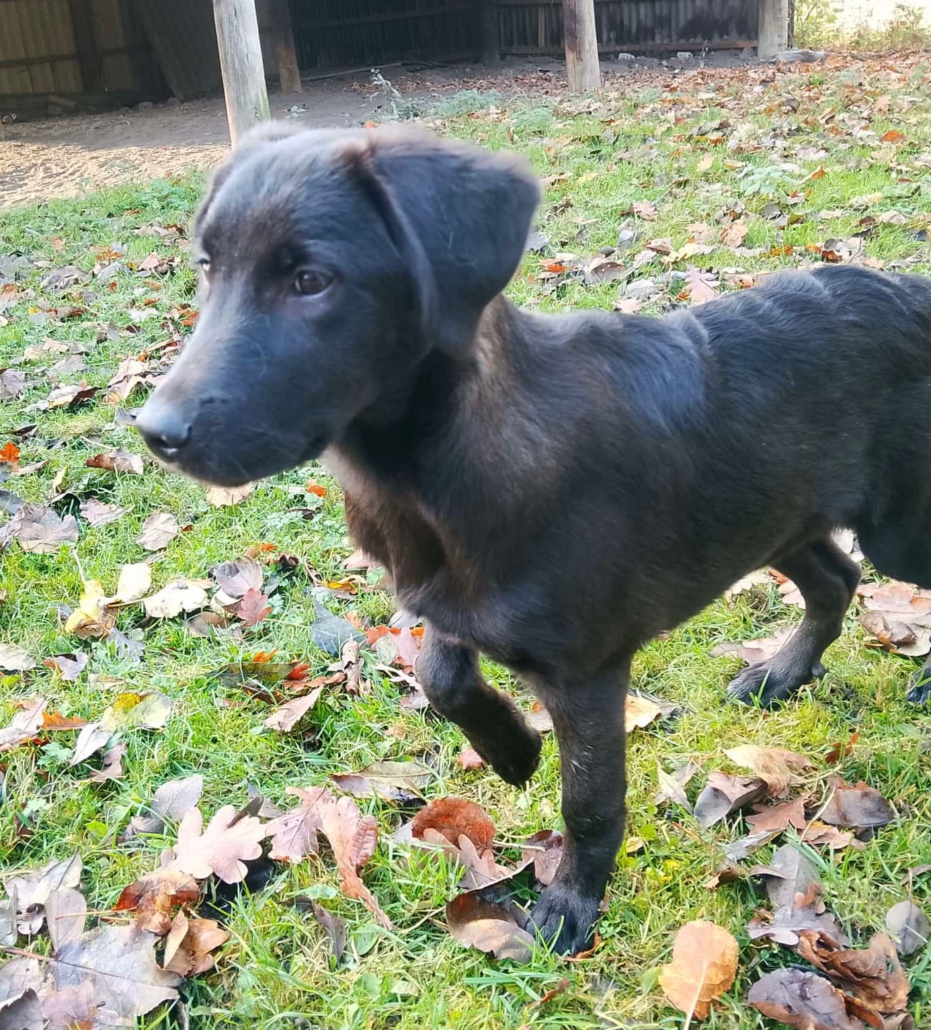 Die Elterntiere sind uns leider nicht bekannt, doch rein optisch erinnert Djusty mit seinem charmanten Blick und seiner Statur an einen Labrador-Mix.