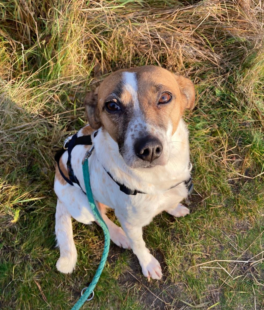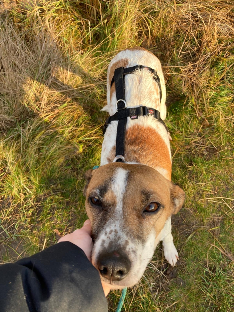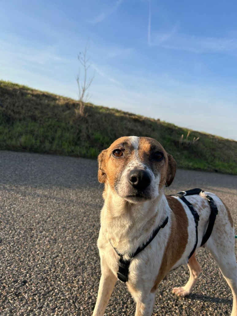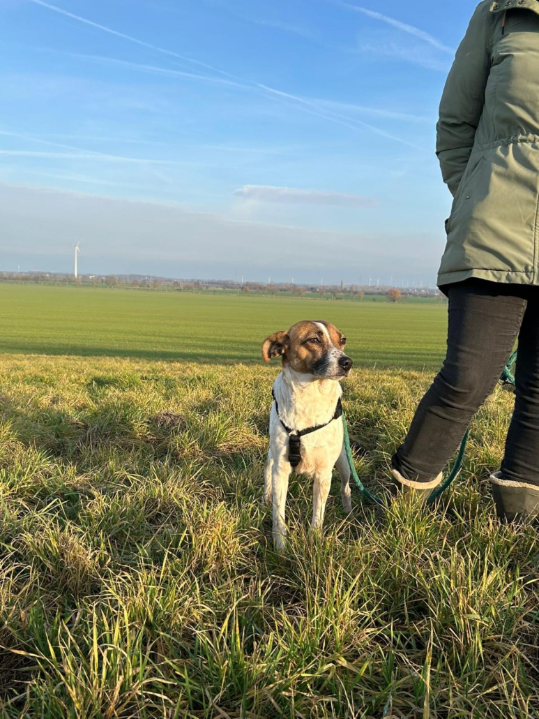 Am Hunde 1×1 wird auf der Pflegestelle fleißig gearbeitet, mittlerweile ist die süße Maus bereits stubenrein und leinenführig.