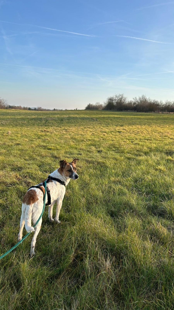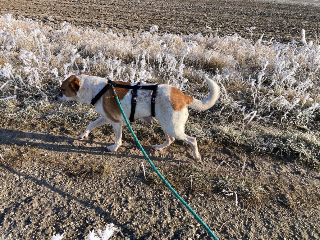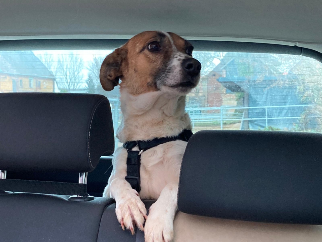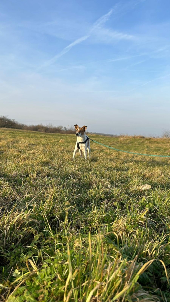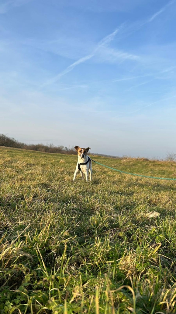 Am Hunde 1×1 wird auf der Pflegestelle fleißig gearbeitet, mittlerweile ist die süße Maus bereits stubenrein und leinenführig.