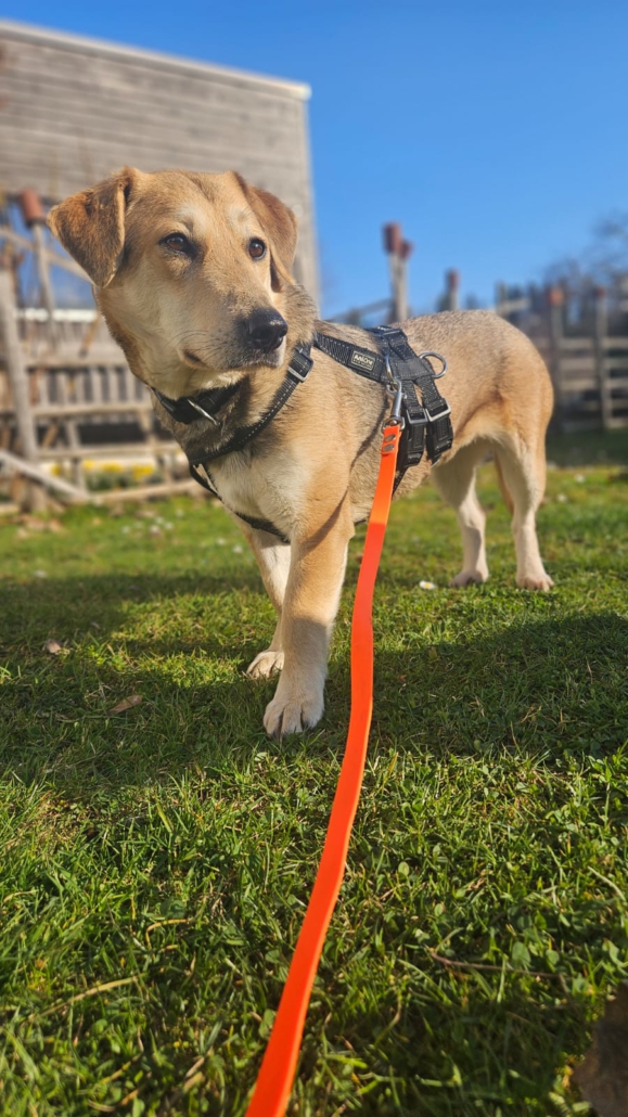 Sie zeigt sich als ruhige, vorsichtige Hündin, die momentan noch etwas Zeit braucht, um Vertrauen zu neuen Menschen aufzubauen. Aktuell ist sie fremden Personen gegenüber noch etwas skeptisch, doch mit Geduld, Ruhe und festen Abläufen lässt sie sich gut auf neue Situationen ein.