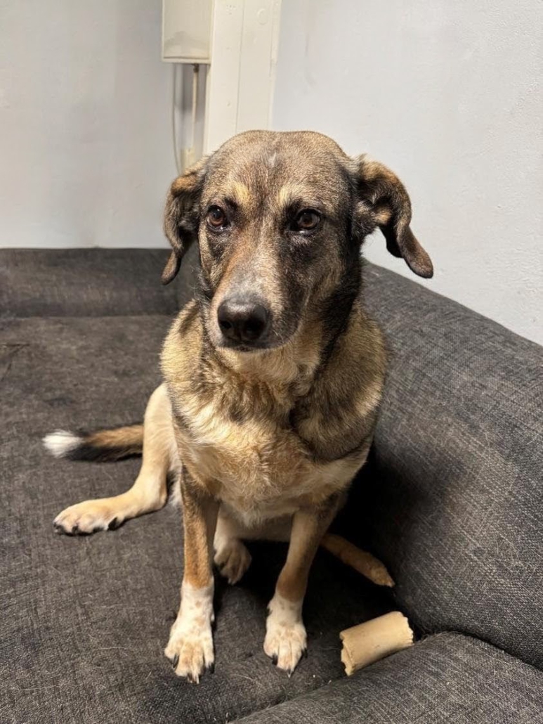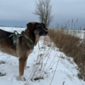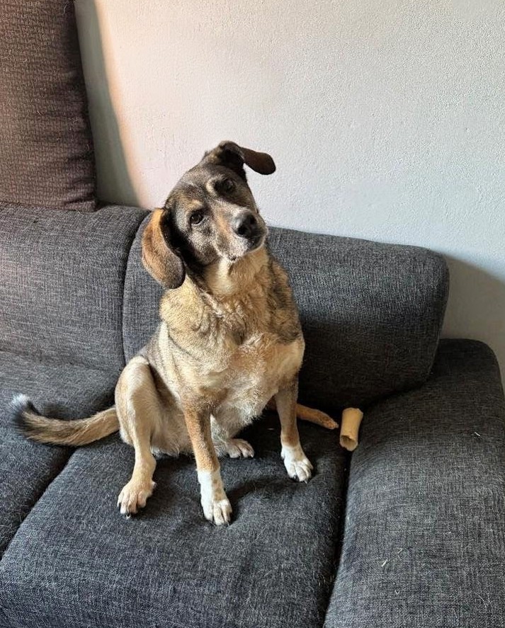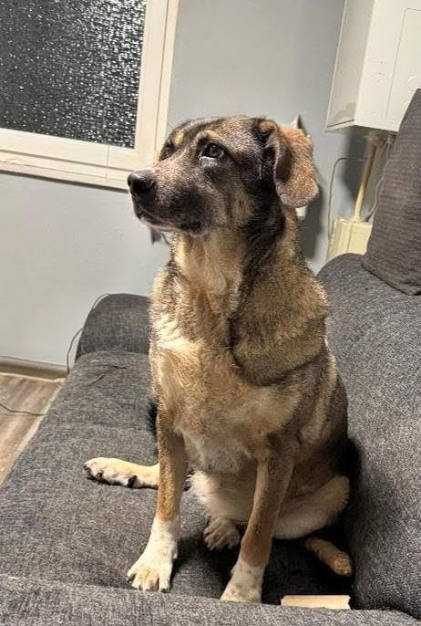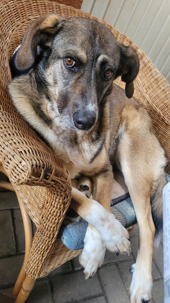 Optisch erinnert sie an einen Schäfi-Mix, hat aber auf jeden Fall auch Herdenschutzgene in sich. Sie hat eine Schulterhöhe von 70 cm und ein Gewicht von ca. 34 kg.