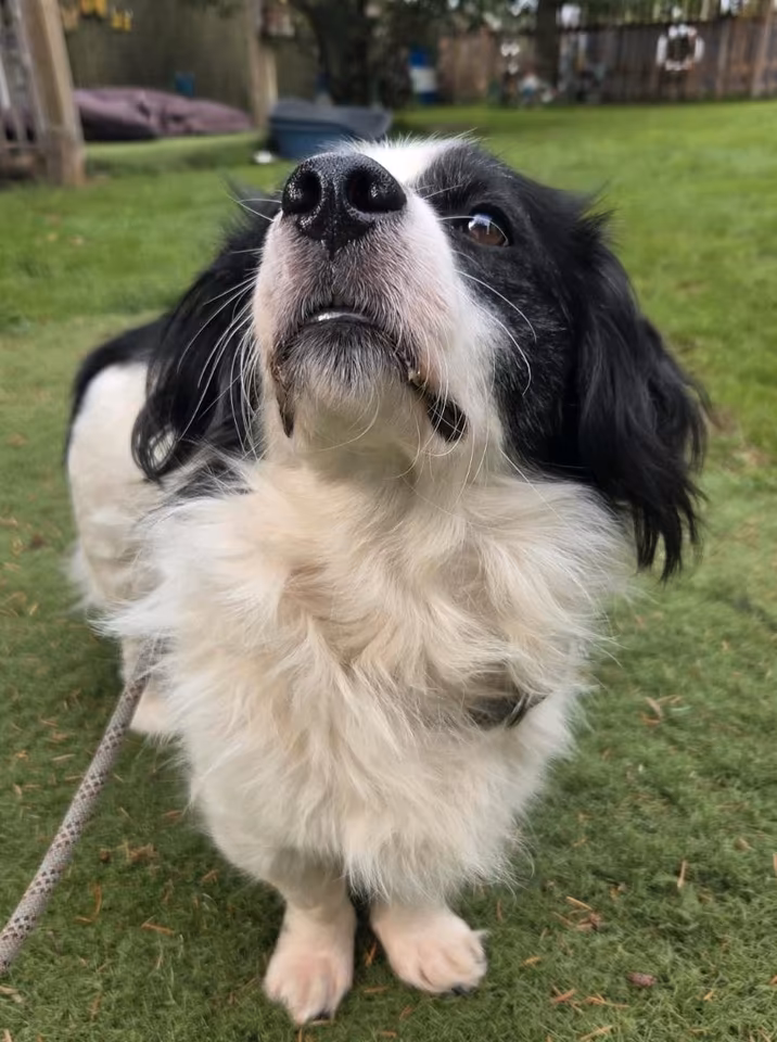 Felix ist ein Fundhund, daher kennen wir die Elterntiere nicht. Optisch besteht eine Ähnlichkeit mit einem Corgie Mix.