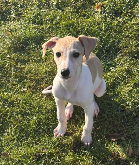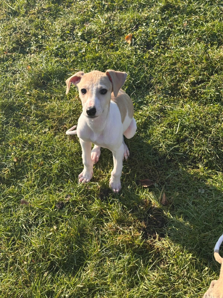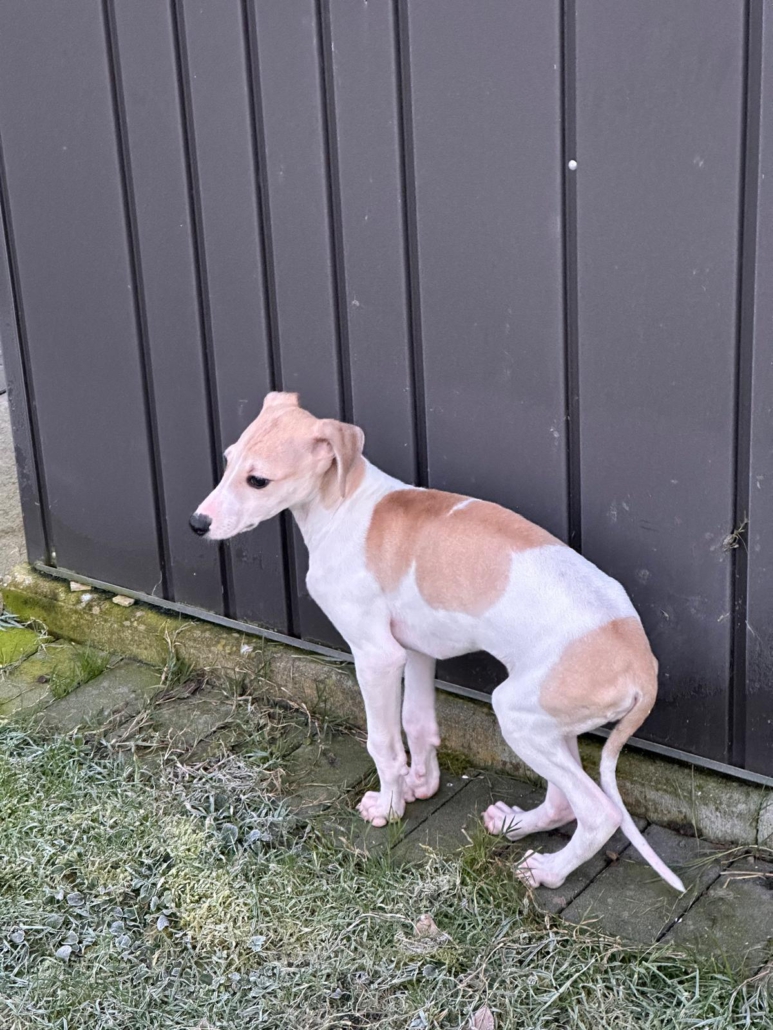 Geboren am 10.10.2025 (durch einen Tierarzt geschätzt) hat sie zur Zeit eine Schulterhöhe von 37 cm und wiegt momentan 5,7kg.Optisch erinnert Hedwig an einen Galgo-Mix.