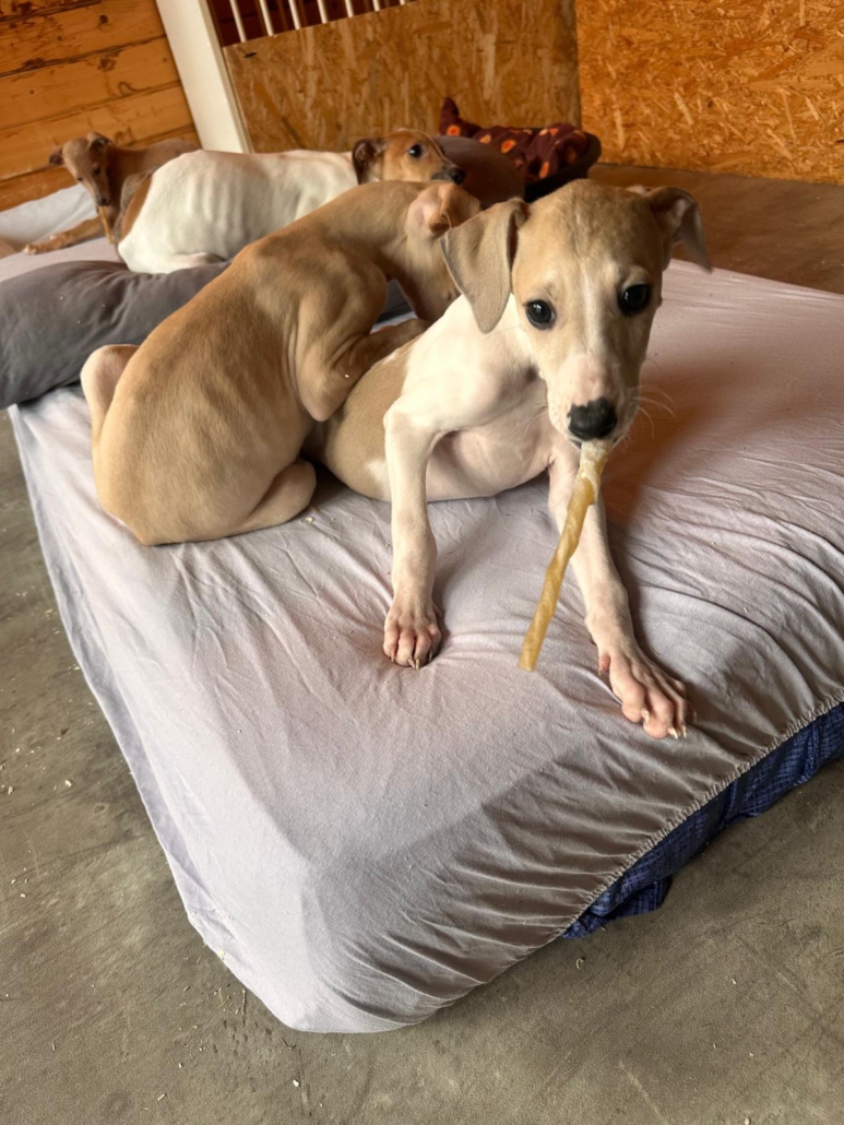 Geboren am 10.10.2025 (durch einen Tierarzt geschätzt) hat sie zur Zeit eine Schulterhöhe von 37 cm und wiegt momentan 5,7kg.