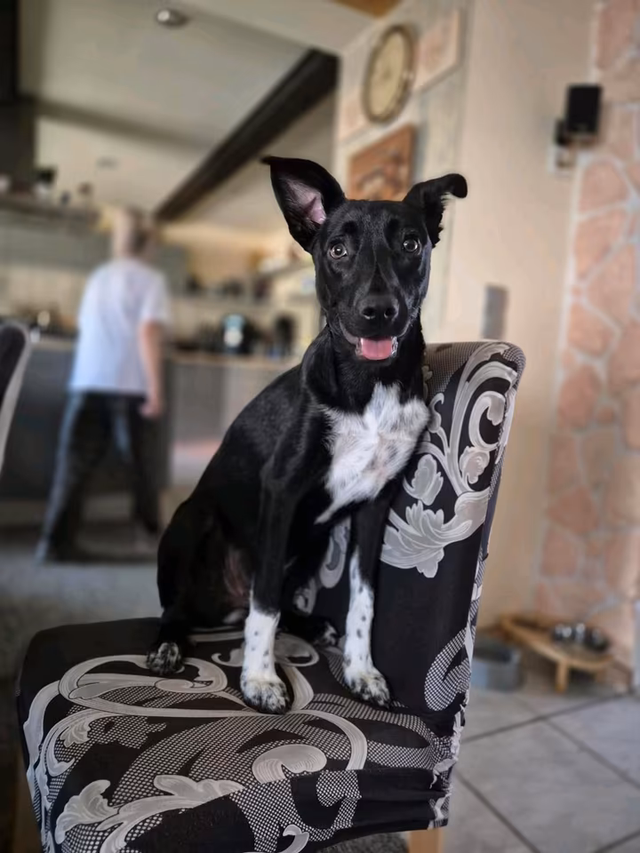 Sie wurde am 26.12.2024 geboren (durch einen Tierarzt geschätzt) und ist altersentsprechend noch nicht kastriert. Maya ist aktuell. 55 cm. Optisch erinnert Maya an einen Schäfi-Mix.