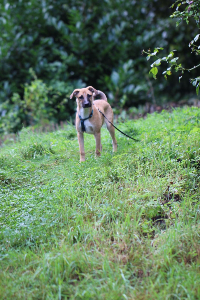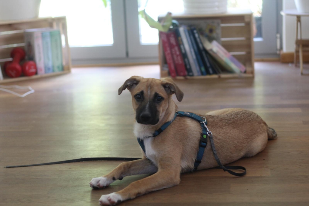 Mia übt auf der Pflegestelle schon fleissig das Hunde 1×1 und macht gute Fortschritte bei Stubenreinheit, Leinenführigkeit und den Grundkommandos.