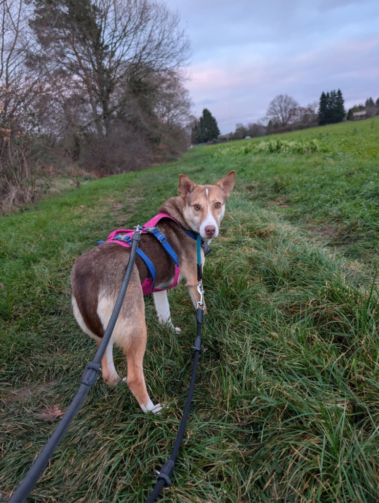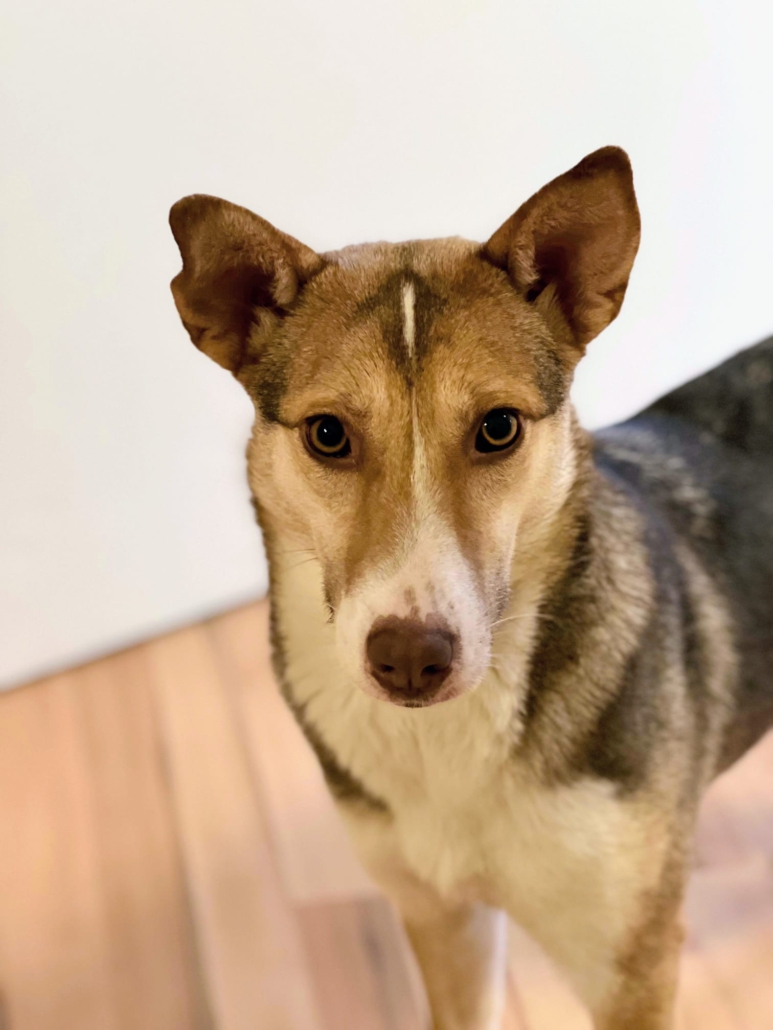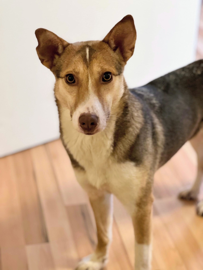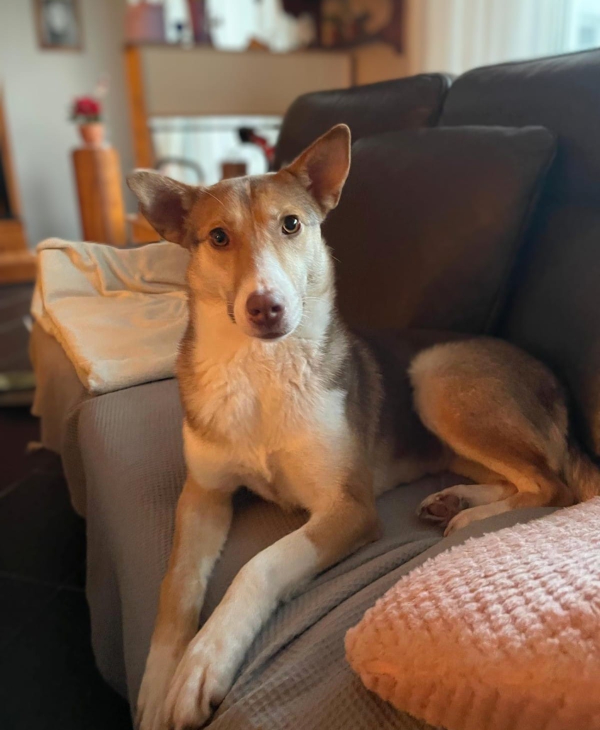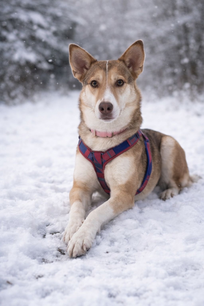 Sie wurde am 01.08.2024 geboren (tierärztlich geschätzt), hat eine Schulterhöhe von ca. 43 cm, wiegt aktuell 13 kg, ist kastriert und erinnert optisch an einen Husky-Schäferhund-Mix.