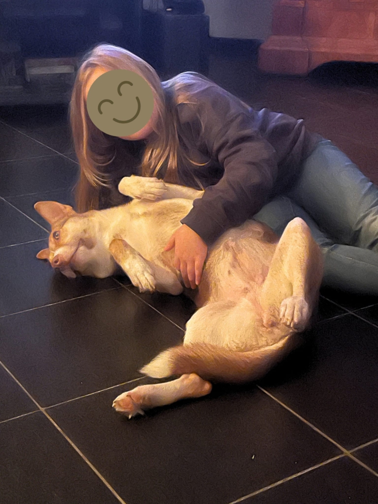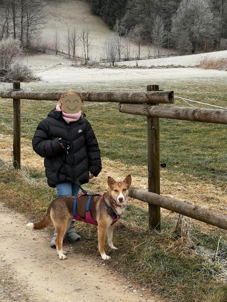 Amira mag Kinder sehr, mit der zehnjährigen Tochter der Pflegestelle geht sie liebevoll um und genießt gemeinsames Spielen und Kuscheln. Daher dürfen gerne Kinder im neuen Zuhause wohnen, die dem Hund respektvoll begegnen und angemessenen Raum zum Ankommen lassen.