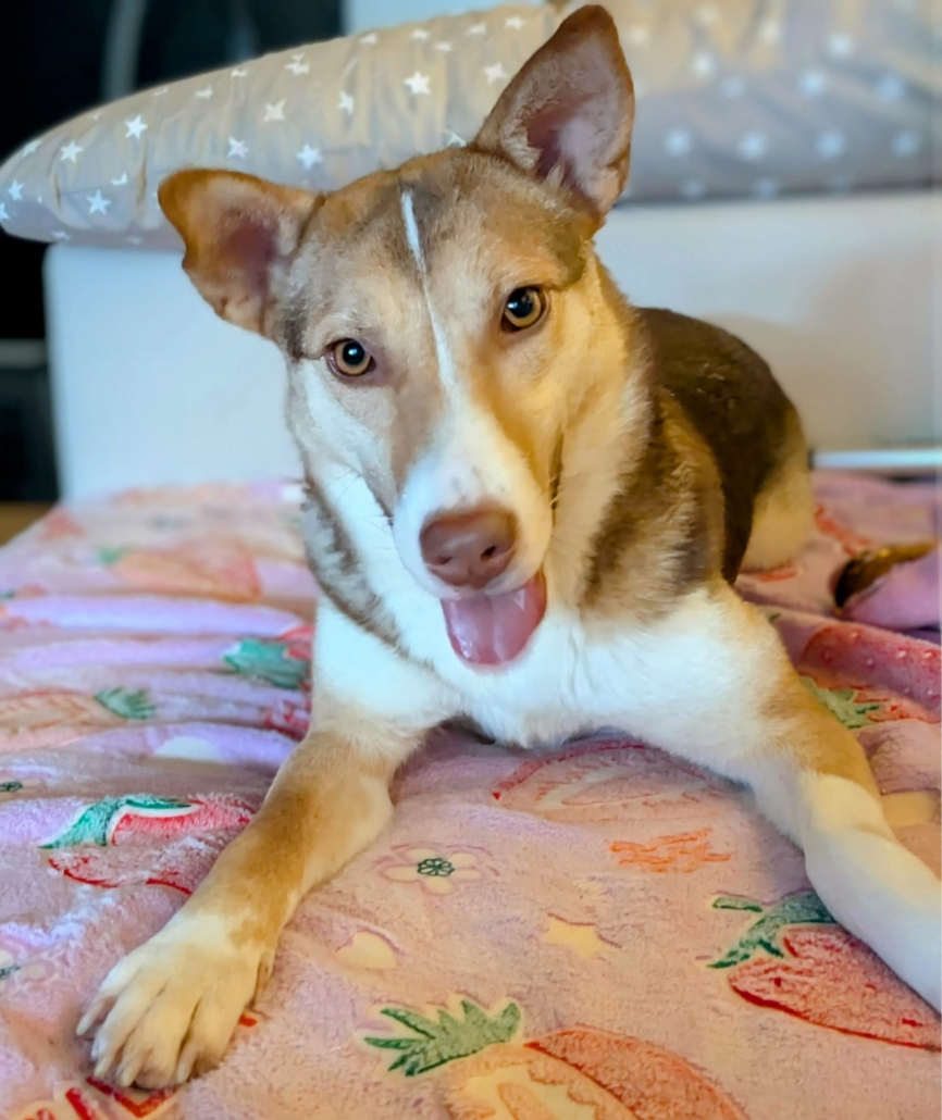 Amira ist ein junges, agiles Hundemädchen, das ausgiebige Spaziergänge liebt und gerne ausgelassen tobt.