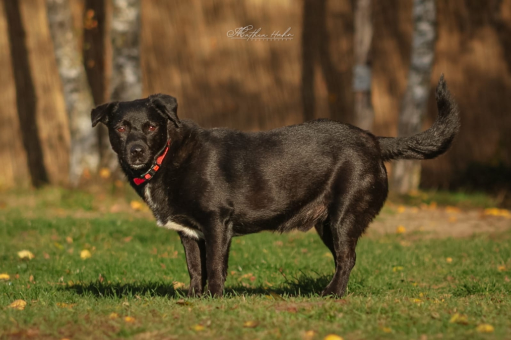 Leider hat er durch die lange Zeit im Shelter auf Betonboden und ohne viel Bewegung eine Schwäche in den Knochen des linken Vorderbeins. Er ist medikamentös gut eingestellt und kommt damit gut zurecht.