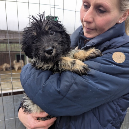 Arischa wurde am 12 März 2018 geboren (durch einen Tierarzt geschätzt) und ist bereits kastriert. Da sie gefunden wurde, kennen wir die Elterntiere nicht. Sie ähnelt optisch mit ihrem schwarz- braunen Fell einem kleinen Collie-Shepherd Mix. Arischa ist ca. 43 cm groß.
