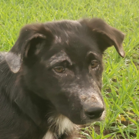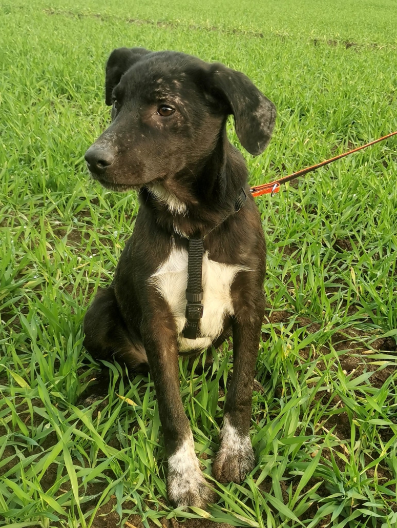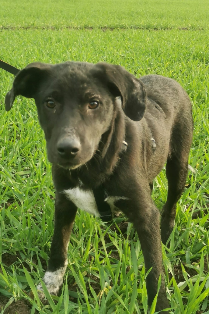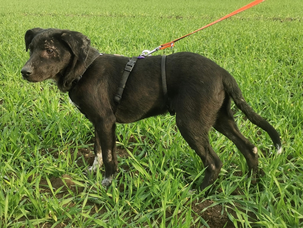 Die Elterntiere sind uns unbekannt, aber rein optisch wirkt unser Schützling wie ein Labbi Mix.