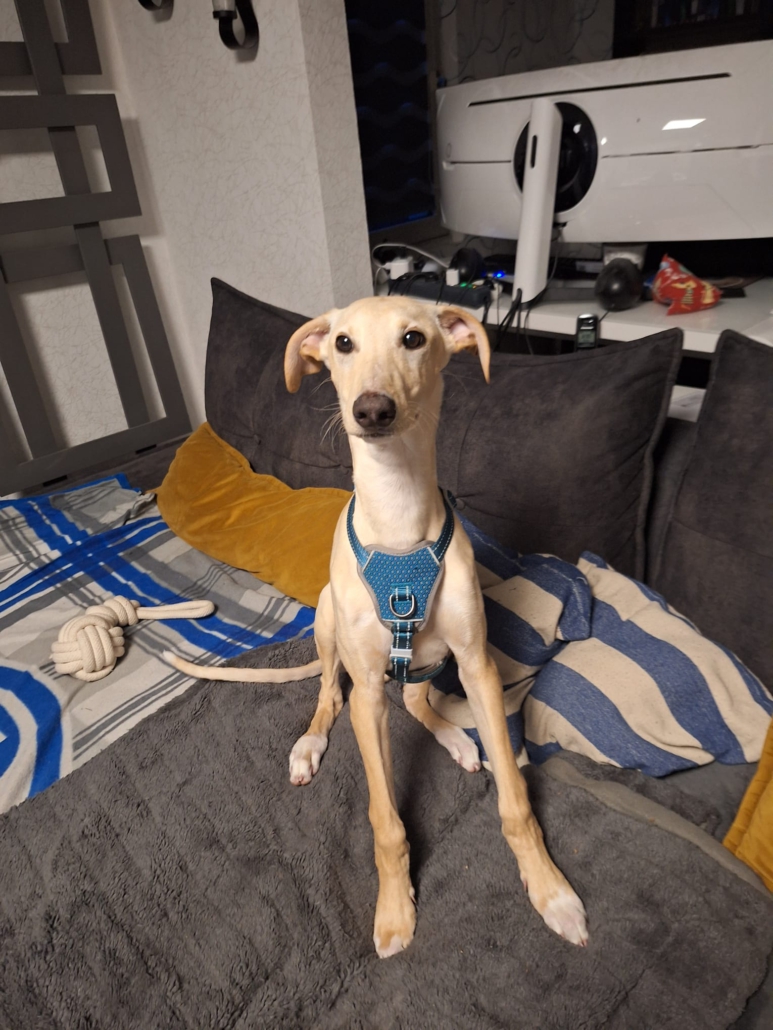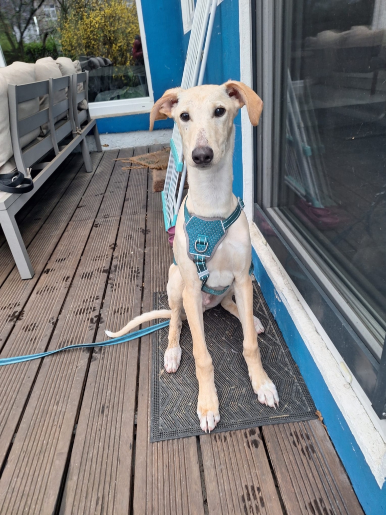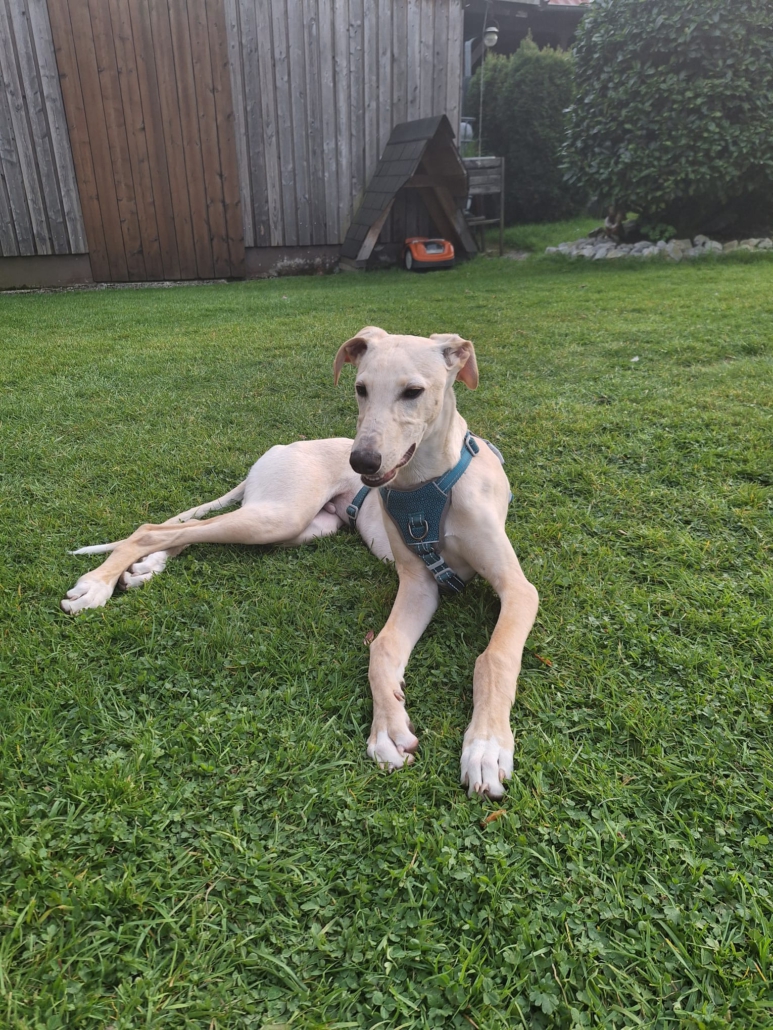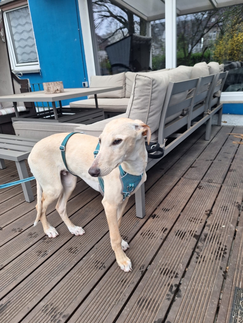 Geboren am 10.10.2025 (durch einen Tierarzt geschätzt) hat er zur Zeit eine Schulterhöhe von 39 cm und wiegt momentan 6,5 kg.