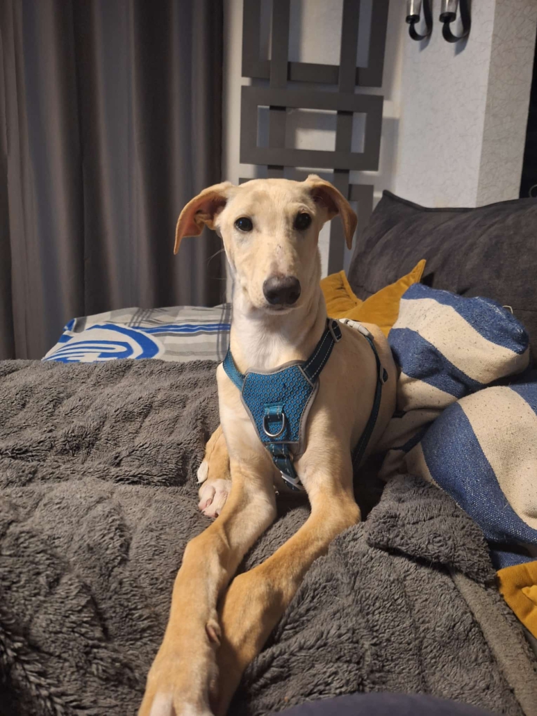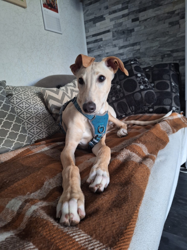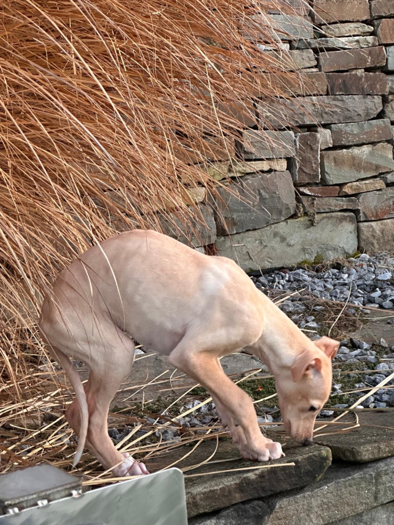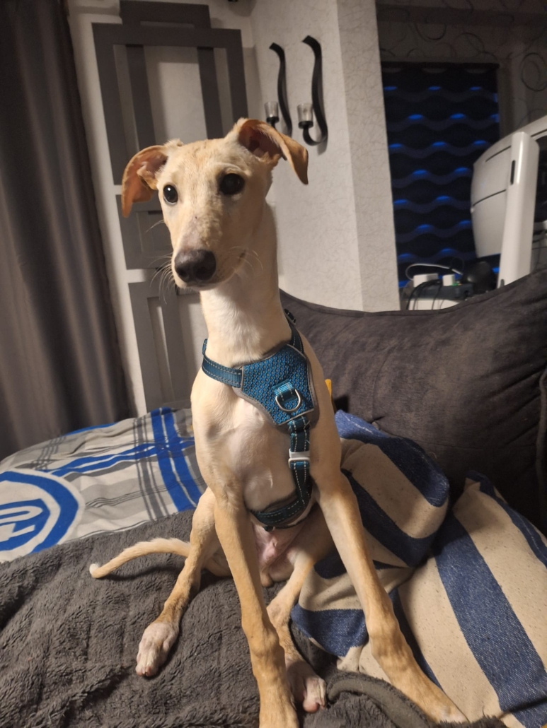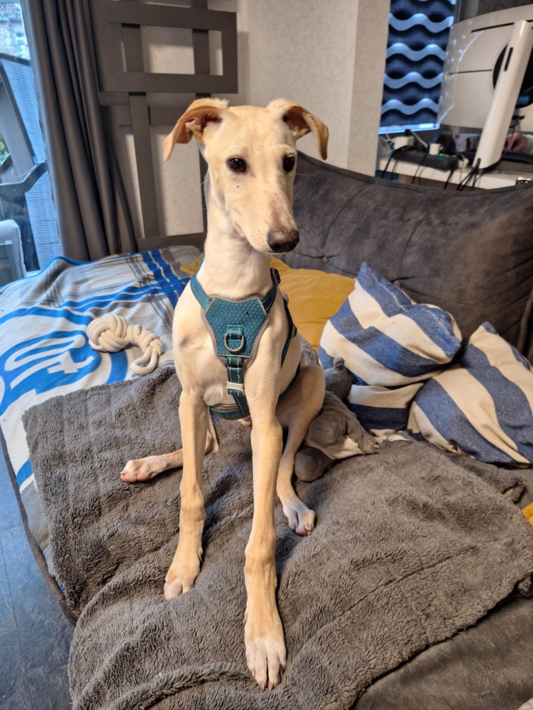 Geboren am 10.10.2025 (durch einen Tierarzt geschätzt) hat er zur Zeit eine Schulterhöhe von 39 cm und wiegt momentan 6,5 kg.